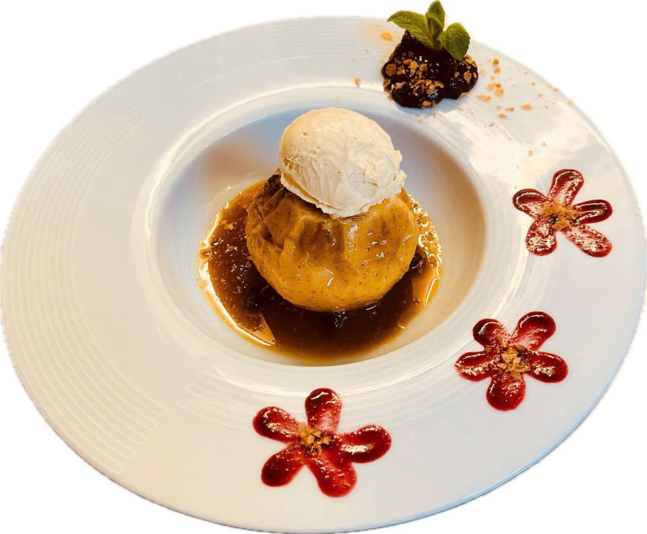Pomme au four servi avec glace